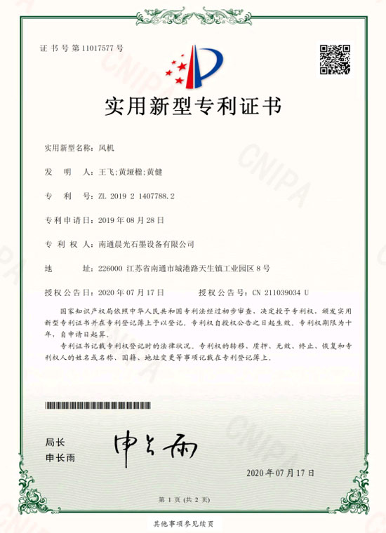 實用新型專利 :風(fēng)機(jī) 專利號:ZL 2019 2 1407788.2