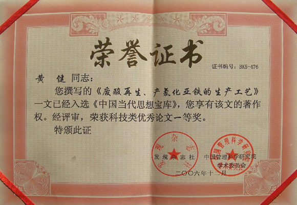 《廢酸再生、產(chǎn)氯化亞鐵的生產(chǎn)工藝》入選《中國當(dāng)代思想寶庫》